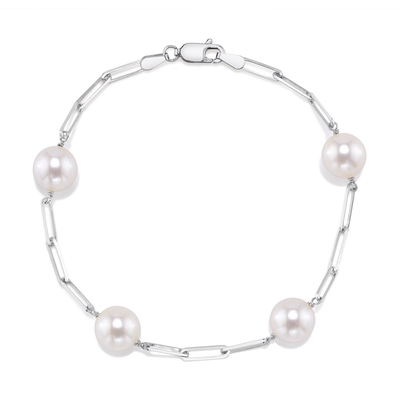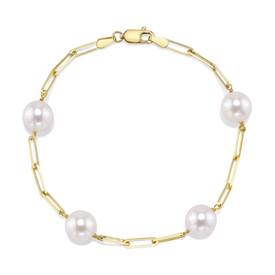 A recent addition to The Pearl Source, this stylish chain and pearl design is sure to turn heads. This beautiful Akoya pearl necklace consists of beautiful and lustrous pearls in AAA quality, and is mounted on 14K gold. Known as the 'icon' of cultured pearls, Akoya pearls have graced the necks, ears, fingers, and wrists of women for decades. The Pearl Source imports their Akoya pearls from the saltwaters of Japan, grown in the Pinctada fucata oyster. All of our Akoya pearl bracelets are made on site, and our extensive experience and careful attention to detail allows us to create truly beautiful pearl jewelry.