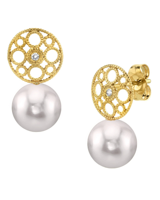 These elegant pearl earrings feature two 8.0-8.5mm AA+ quality Japanese Akoya pearls, handpicked for their incredible luster and overtones. The pearls are mounted on the finest 14K gold with dazzling SI clarity diamonds. The approximate height for each earring is 0.75 inch. These earrings come packaged in a beautiful jewelry gift box, perfect for gifting.
