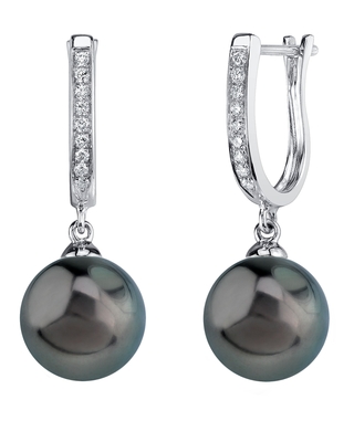 Beautiful earrings, silver Tahitian, 10 mm, with small diamonds on the huggie - just lovely!