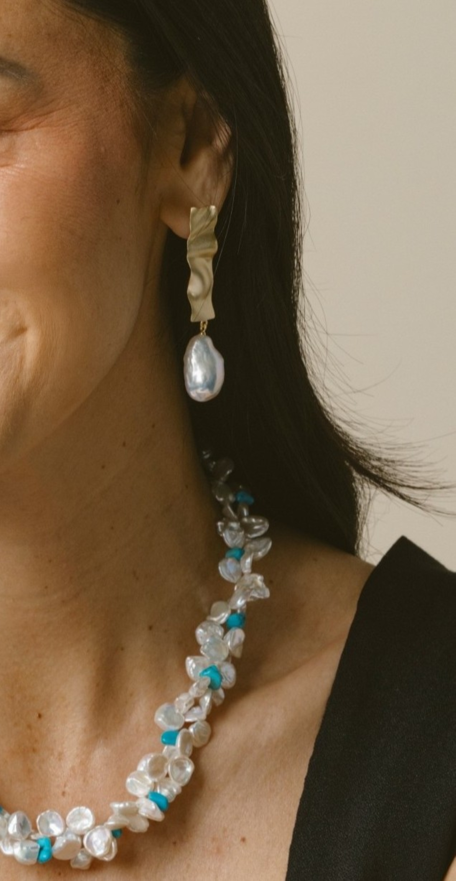 9-10mm Double Twisted White Freshwater Keshi Pearl Necklace