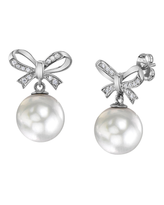 White South Sea Pearl & Diamond Bow Dolly Earrings